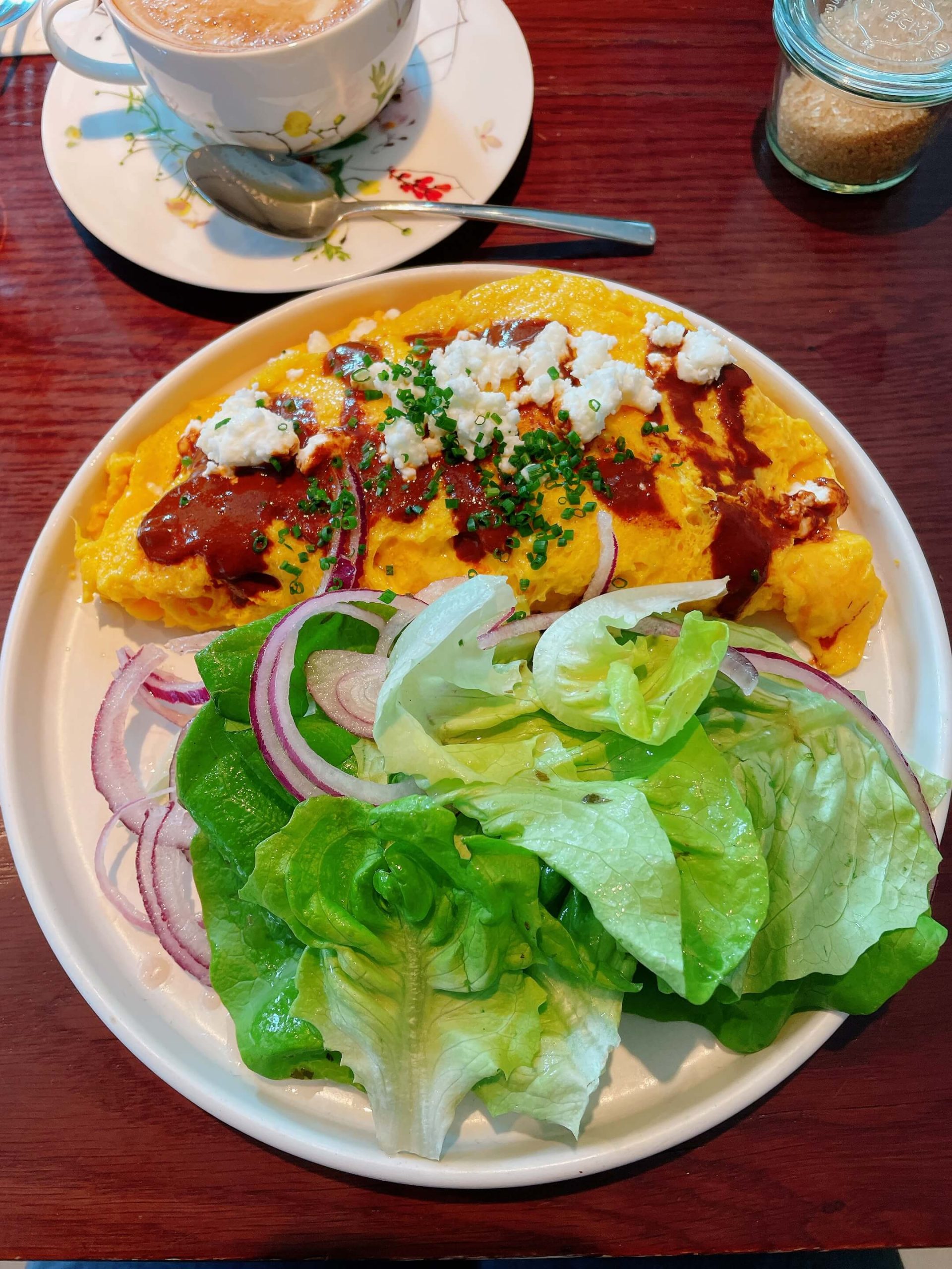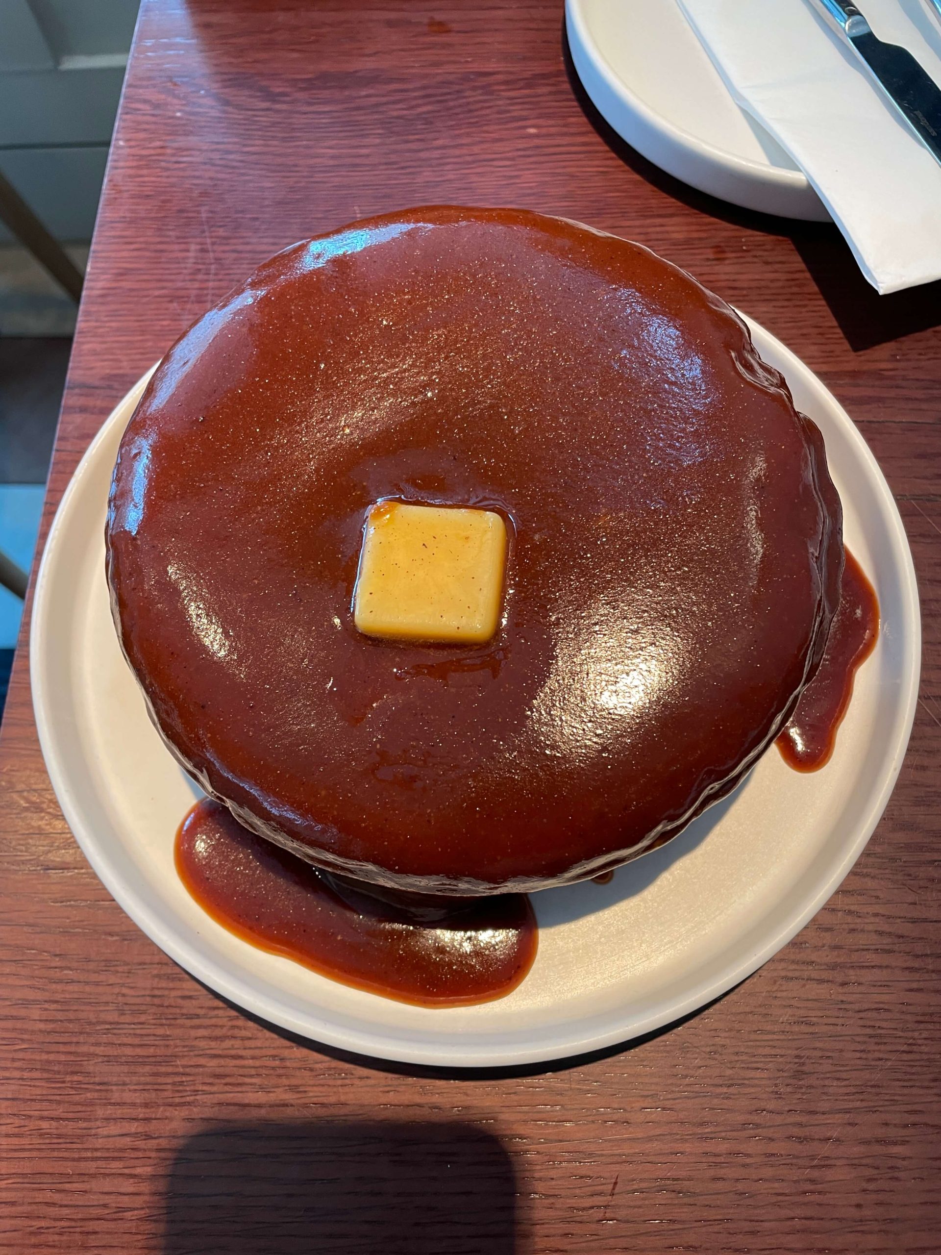 再訪時,遇到隔壁桌兩個女生出來,其中一個人點了Double Pancakes,我們都在心想她一定沒吃過,結果來了之後,她真的嚇到,一副不知道該怎麼吃,結果同友人跟她交換,因為偷偷聽到她說她沒辦法吃那麼多甜。所以請大家謹慎點餐哈哈!