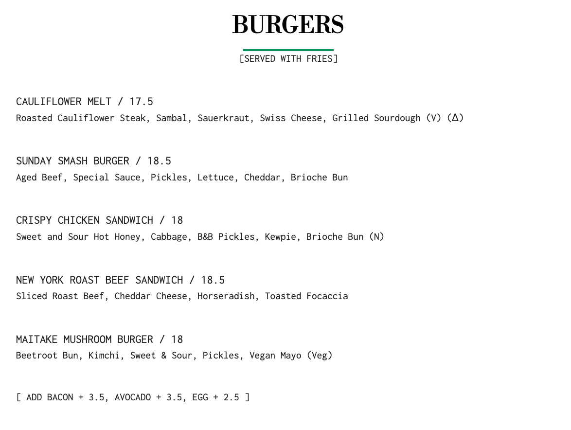 Notting Hill跟另一家分店Marylebone的菜單稍稍不同,熱門選項都有就是了!